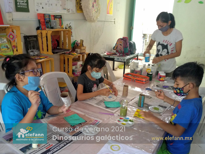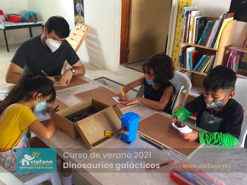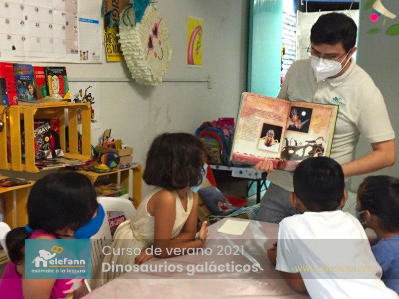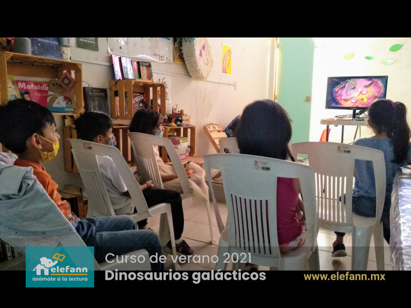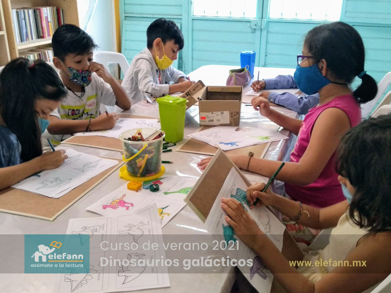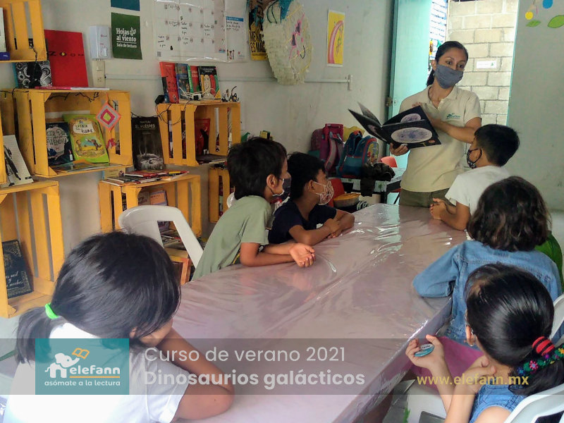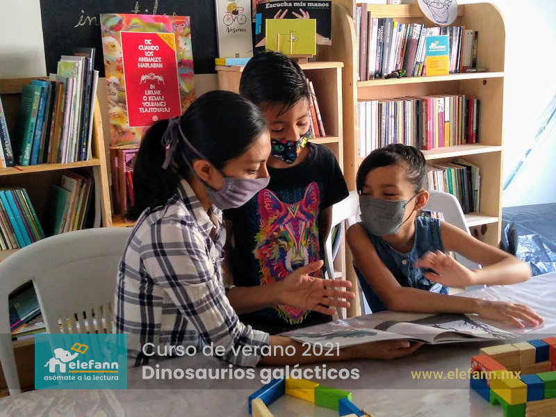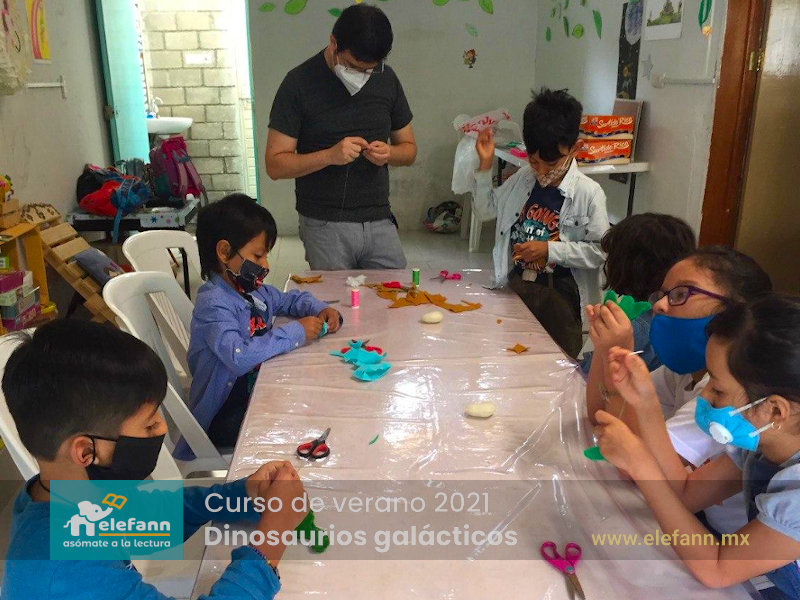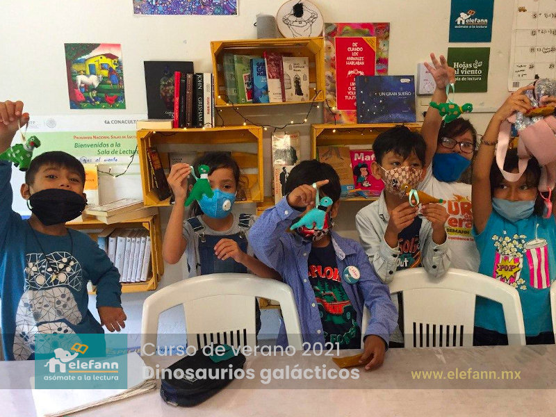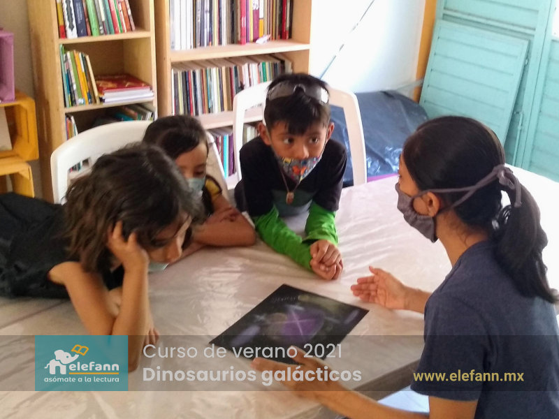 Del 26 de julio al 06 de agosto de 2021, en la sala de lectura “Hojas al viento”, recibimos con mucho entusiasmo a un grupo reducido de niños en el curso de verano “Dinosaurios galácticos”. Después de un año y medio de no tener actividades presenciales, tanto los niños como nosotros nos encontramos con mucho por compartir de nuestro “encierro” debido a esta pandemia que vivimos.