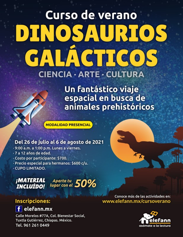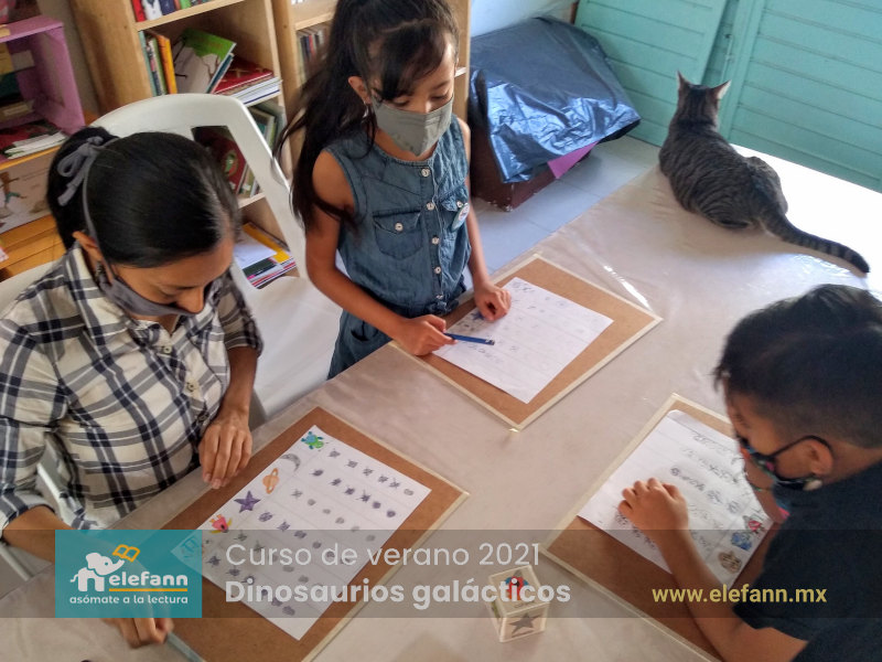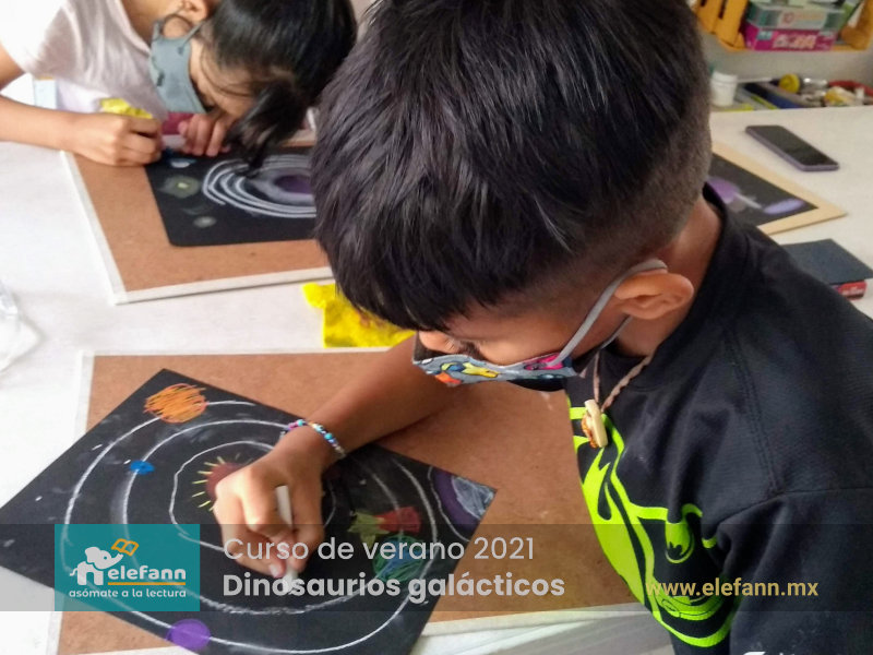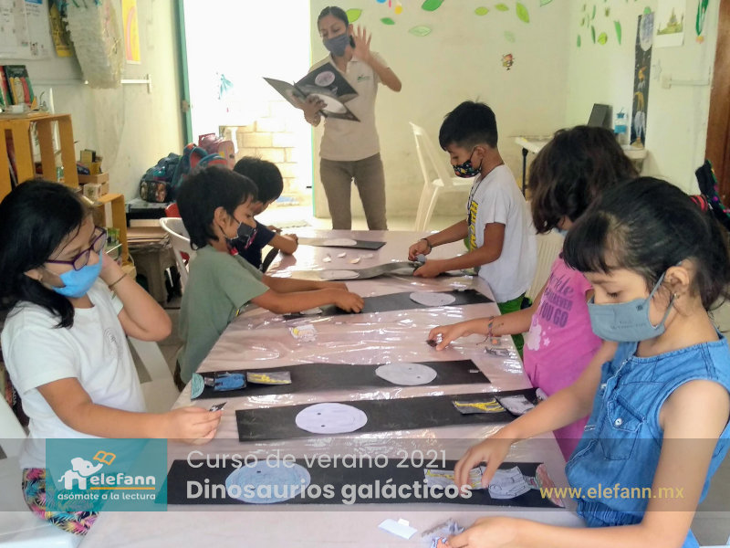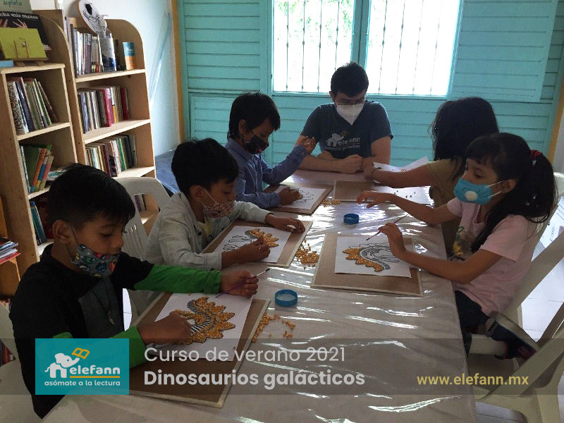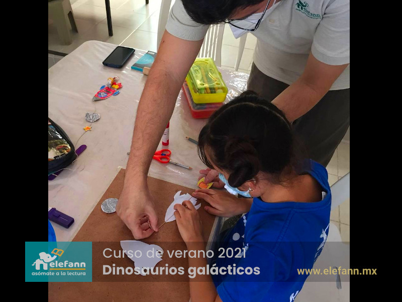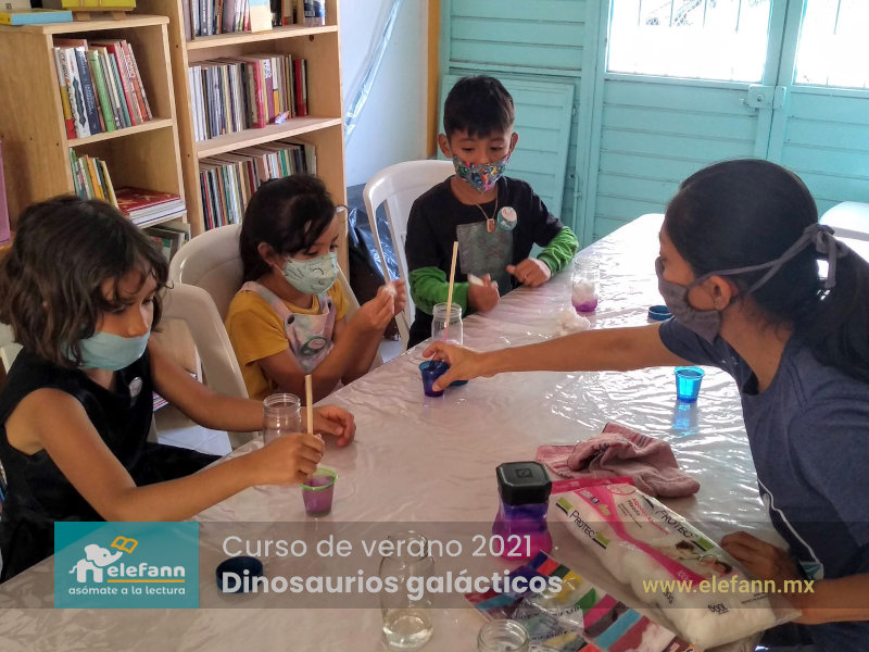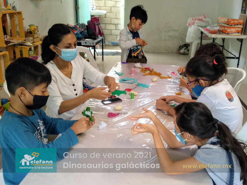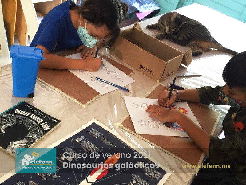 Del 26 de julio al 06 de agosto de 2021, en la sala de lectura “Hojas al viento”, recibimos con mucho entusiasmo a un grupo reducido de niños en el curso de verano “Dinosaurios galácticos”. Después de un año y medio de no tener actividades presenciales, tanto los niños como nosotros nos encontramos con mucho por compartir de nuestro “encierro” debido a esta pandemia que vivimos.