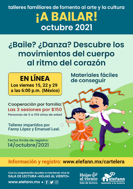 ELEFANN te invita a los talleres familiares que tienen por objetivo la reflexión de diversos temas a través de la literatura y de actividades lúdicas, fomentando la convivencia intergeneracional y el despertar de la curiosidad para conocer más. Es por eso que, a diferencia de otros talleres, estos buscan la participación activa de la niñez, la juventud y la adultez.