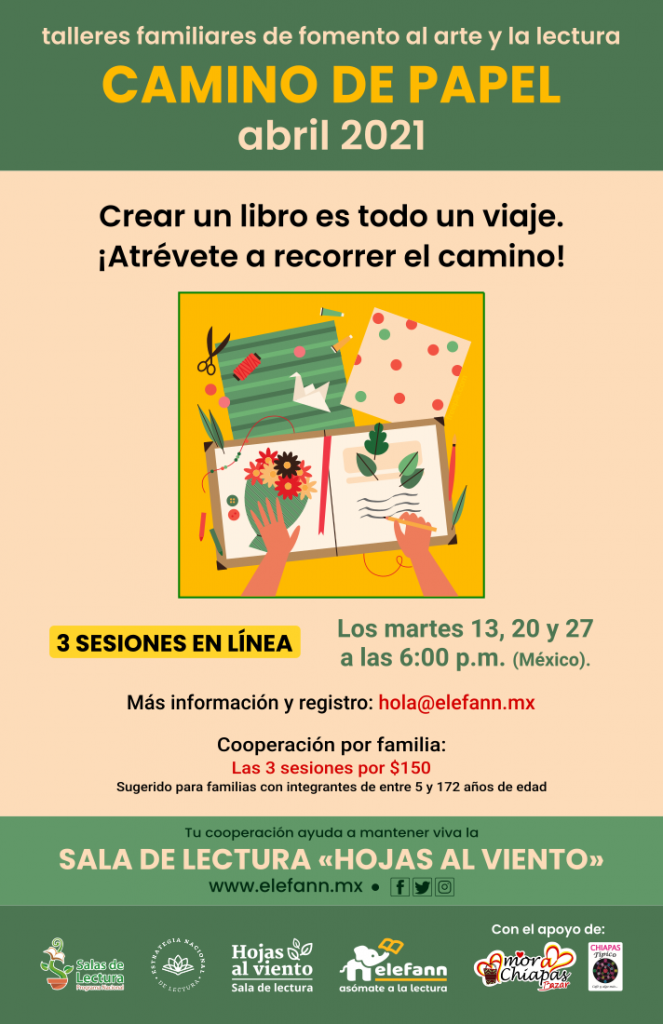 ELEFANN a través de la Sala de lectura «Hojas al viento», te invita a los talleres familiares que tienen por objetivo la reflexión de diversos temas a través de la literatura y de actividades lúdicas, fomentando la convivencia intergeneracional y el deseo de conocer más. Es por eso que, a diferencia de otros talleres, estos buscan la participación activa de los adultos, de los jóvenes y de los niños.