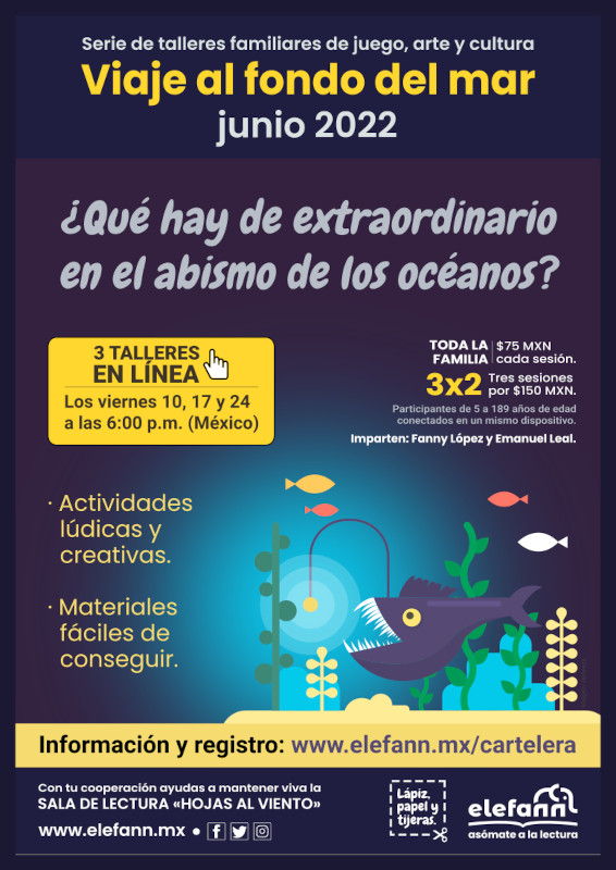 - Cooperación por familia*: Los 3 talleres por $150 MXN (Ciento cincuenta pesos 00/100 MXN) o cada taller por $75 MXN.
