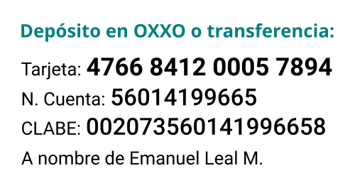 - Primero, realiza tu depósito en Oxxo o transferencia bancaria por la cantidad de $150 MXN (Ciento cincuenta pesos 00/100 M.N.).