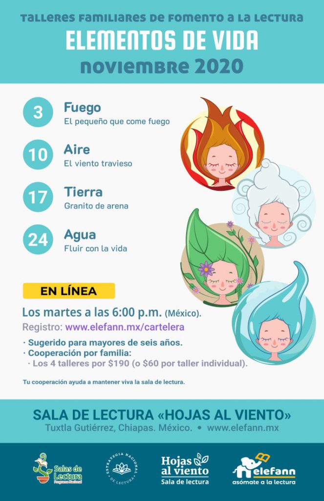 ELEFANN a través de la Sala de lectura «Hojas al viento», te invita a los talleres familiares que tienen por objetivo la reflexión de diversos temas a través de la literatura y de actividades lúdicas, fomentando la convivencia intergeneracional y el deseo de conocer más. Es por eso que, a diferencia de otros talleres, estos buscan la participación activa de los adultos, de los jóvenes y de los niños.